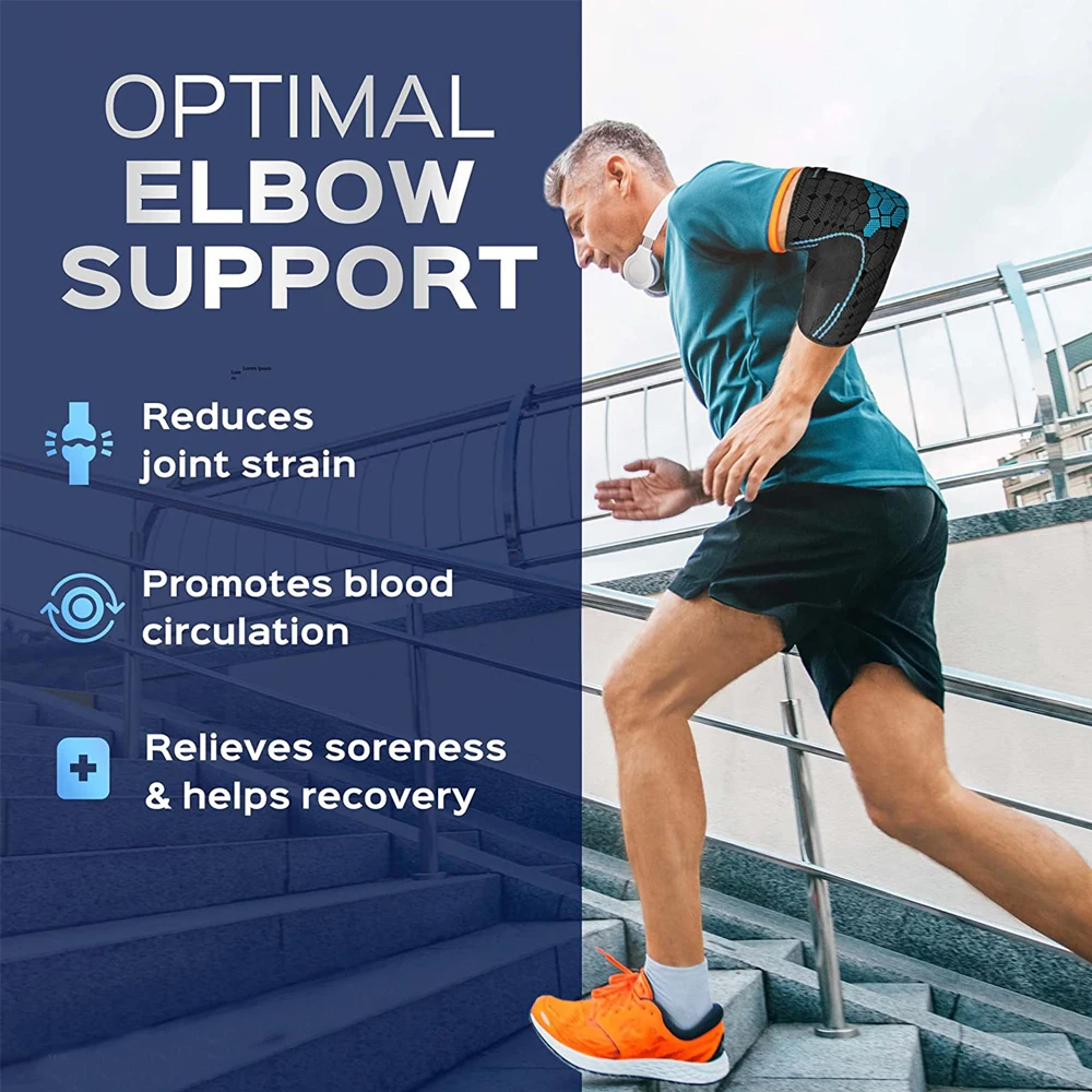 This elbow compression sleeve is designed to support men and women experiencing tennis or golfer’s elbow. The breathable elastic blend provides comfortable, all-day support. Its snug compression helps relieve pressure on tendons and joints. The sleeve promotes better circulation to reduce stiffness and soreness. Lightweight fabric ensures unrestricted movement during sports or work. The secure fit stays in place without slipping during activity. It is ideal for tennis, golf, lifting, or everyday arm strain. Durable stitching ensures the sleeve maintains its shape and support over time. The soft inner texture reduces irritation and enhances comfort. This elbow brace offers effective support for pain relief and active recovery.