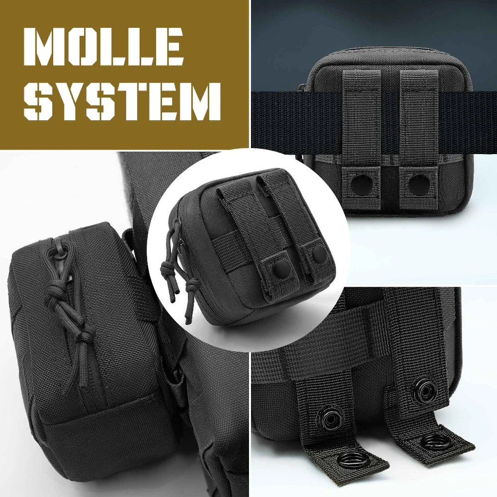 This 2-pack mini tactical Molle pouch is designed for versatility, durability, and compact storage. Ideal for carrying ammo, tools, or everyday carry (EDC) essentials. Made from rugged materials to withstand heavy use and outdoor conditions. Molle-compatible design allows easy attachment to belts, backpacks, or tactical gear. Multiple compartments provide organized storage for small items. Lightweight and compact, perfect for portability. Adjustable straps ensure a secure fit on waist belts or gear. Durable zippers and stitching ensure long-lasting use. Suitable for outdoor activities, tactical operations, or daily use. This multi-purpose pouch combines functionality, convenience, and practicality for active users.
